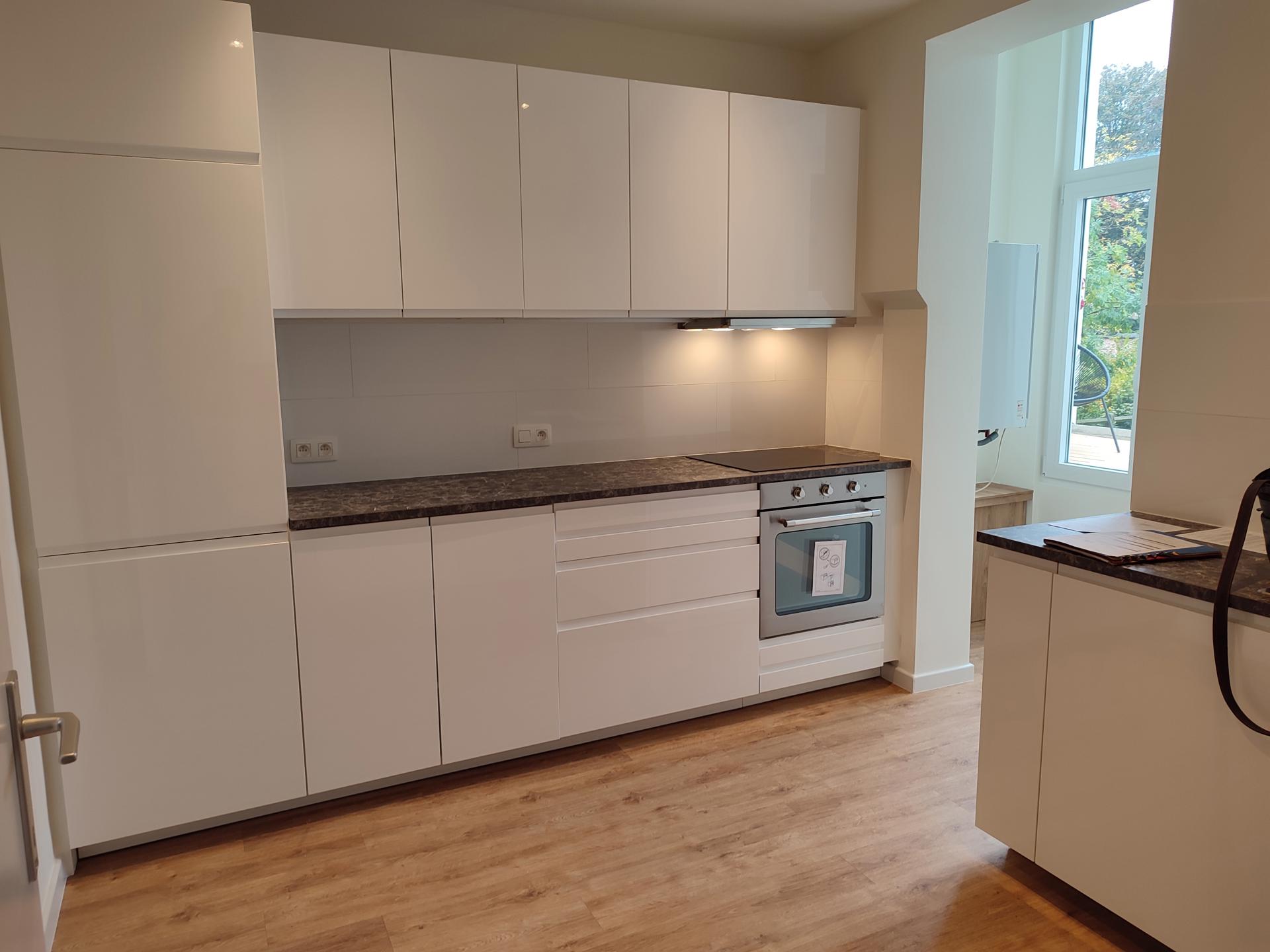 Uccle, quartier Churchill, à proximité des commerces Edith CAVELL, dans un quartier de standing et recherché, proche du bois de la Cambre et des transports en commun, appartement ENTIEREMENT REMIS A NEUF 2 chambres à louer dans petit immeuble de style bruxellois au charme d'antan. Au 1er étage, Il est composé d'un hall d'entrée desservant la cuisine équipée avec balcon couvert/buanderie, un vaste salon avec 2 grandes pièces en enfilade et accès à une très grand terrasse ouest ensoleillée. Grande chambre (16 m²), petite chambre ou bureau (8 m²), salle de bain avec baignoire. Une cave. Charges communes 35€. Chaudière à condensation au gaz. Bail 3 ans minimum.